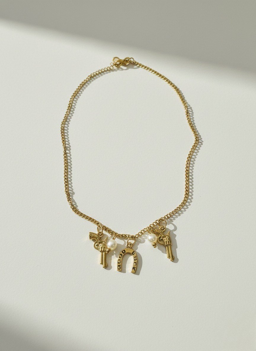 RoomService › Dead Aim & Dainty Image 1 of 2 Image 2 of 2 Dead Aim & Dainty $25.00 Brass coated necklace Purchase Added! Brass coated necklace